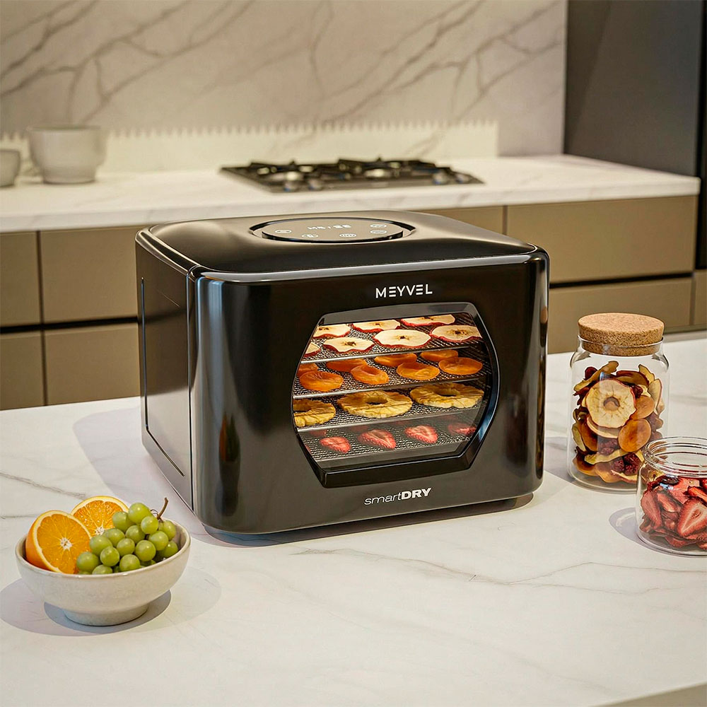 Meyvel MDH5-2P (Чёрный) (Black) подходит тем, кто делает домашние заготовки, придерживается правильного питания или просто любит натуральные снеки без добавок. С его помощью можно готовить фруктовые чипсы, овощные смеси для супов, сушеные ягоды для выпечки, травяные сборы и мясные закуски. Один прибор закрывает множество задач и помогает по-новому взглянуть на привычные продукты.