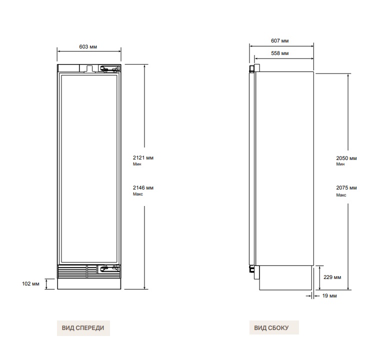 - Общая высота: 2121 мм ~ 2146 мм