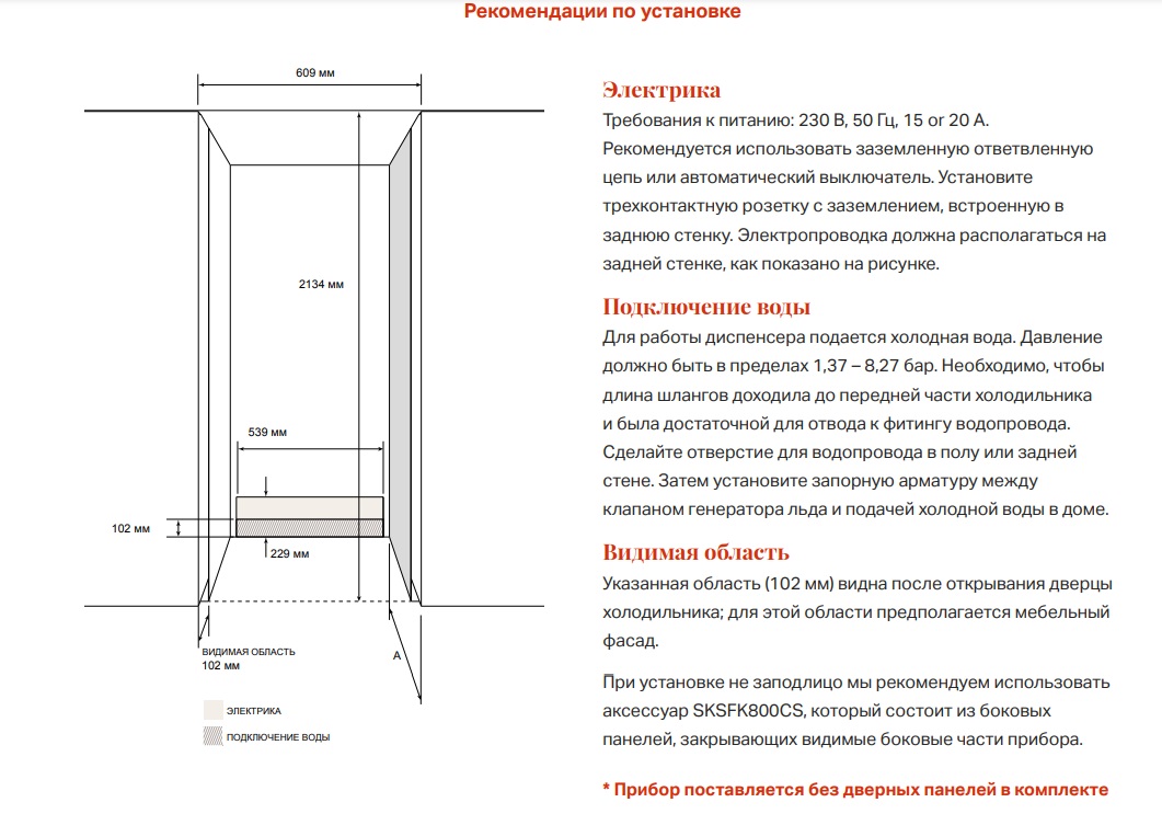 - Комплект боковых панелей при установке не заподлицо: SKSFK800CS