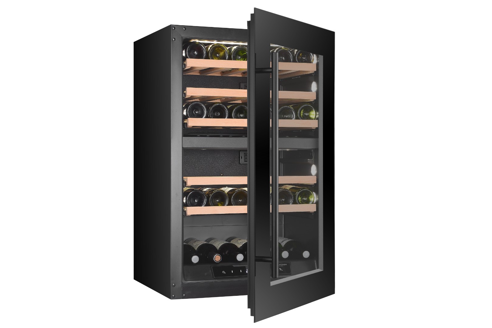 - Реверсивная дверь, которая позволяет устанавливать два винных шкафа рядом;